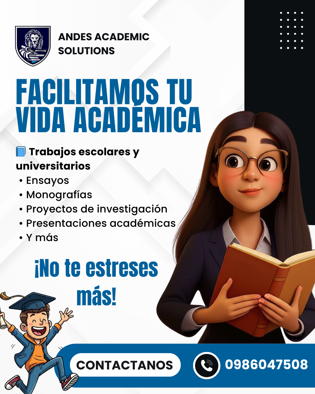 Te ayudamos con tus tareas, proyectos, tesis, presentaciones y mucho más. Ahorra tiempo, reduce el estrés y mejora tu rendimiento con el respaldo de Andes Academic Solutions.